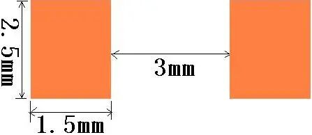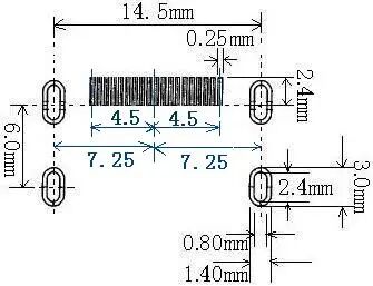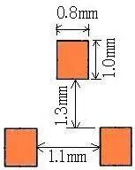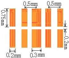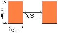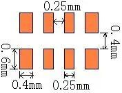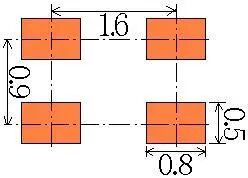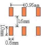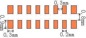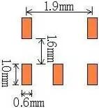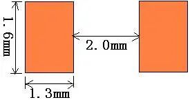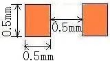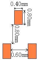 | 以焊盘中心为中心,开孔圆形D=0.55mm | 开口宽度0.2mm(钢网厚度T建议厚度为0.15mm) | 适用与普通电阻、电容、电感 | |