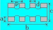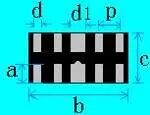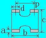 a1=1.75±0.25,a2=1.5±0.25 b=6.50±0.20,c=3.50±0.20 d1=0.70±0.1,d2=3.00±0.1 p=2.30±0.05 |