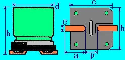 (Ø10×10.5) d=10.0±0.5 h=10.5±0.3 | a=3.5±0.2,b=10.3±0.2 c=10.3±0.2,e=0.8~1.1 p=4.6 | A=4.20,B=1.30 P=4.80,R=0.65 | ||||