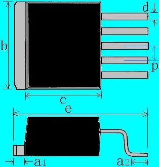 a1=1.30±0.1,a2=2.55±0.25 b=9.97±0.32,c=9.15±0.50 d1=1.3±0.10,d2=0.75±0.24 e=15.25±0.50,p=2.54±0.10 |