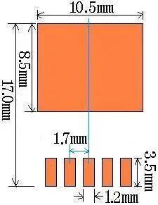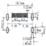 A=a+0.7,B=0.17mm P=p G1=e1-2*(0.4+a) G2=e2-2*(0.4+a) | T=0.10mm, 引脚开口宽度0.15mm | |||