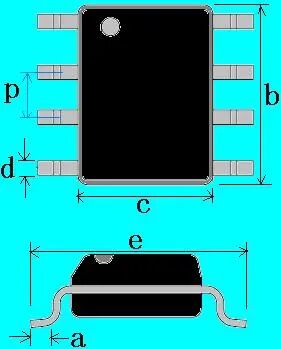 | 七、SOP | SOP + 尺寸制式 + e X a X d X p X j | SOPMM6X0d8X0d42X1d27X8:e=6mm, a=0.8mm, d=0.42mm, p=1.27mm, 8引脚。 |