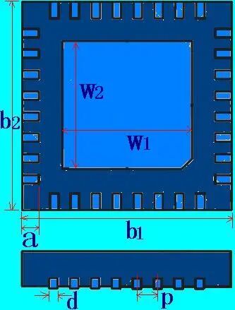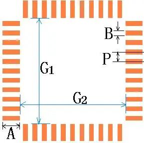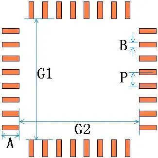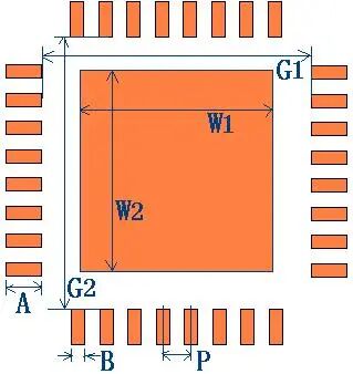 QFN (Pitch<0.65mm) | A=a+0.3,B=d, P=p W1=w1,W2=w2 G1=b1-2*(0.05+a) G2=b2-2*(0.05+a) | 建议钢网引脚开口长度方向外扩0.20mm,其他的同上所述 | ||||