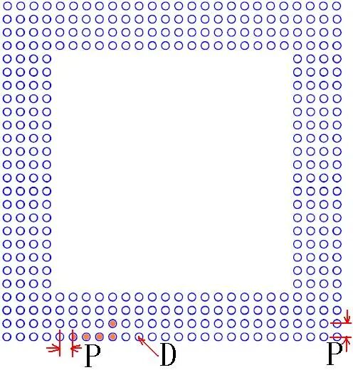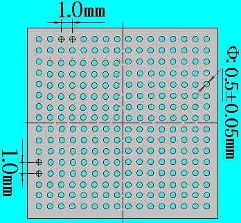 D=0.40mm P=0.80mm | 建议钢网开口直径为0.40mm | 不代表实际BGA底部焊球的排列方式 | ||