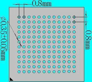 D=0.35mm P=0.80mm | 建议钢网开口直径为0.40mm | 不代表实际BGA底部焊球的排列方式 | ||