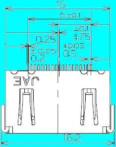 a1=1.0±0.20,a2=0.6±0.20 b=2.50±0.20,c=4.50±0.20 d1=0.4±0.10,d2=0.5±0.10 d3=1.65±0.20,p=1.5±0.05 |
