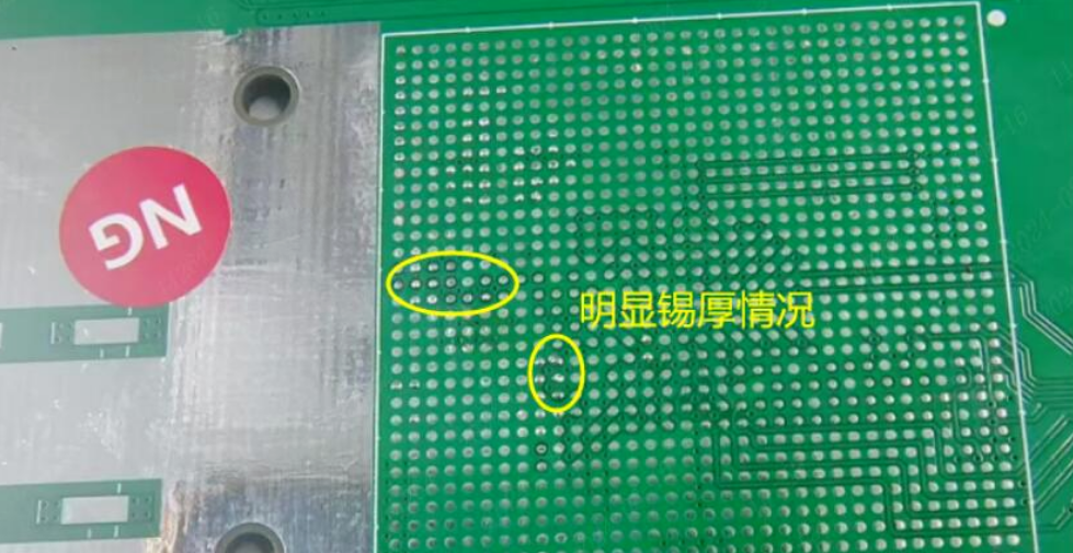 短路风险:在BGA组装焊接的高温环境下,锡膏会发生熔融流动。锡层超厚的焊点上,多余熔融锡膏易溢出并流入相邻两个BGA焊点之间,冷却后形成锡桥,直接引发短路故障。