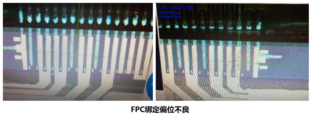 在FOG(玻璃上柔性电路板)绑定过程中,对绑定设备及材料的尺寸精度、公差要求极高。高温压合时,材料不可避免会发生膨胀,进而导致FOG绑定偏位不良;一旦出现偏位,会引发一系列问题:单Pad上有效导电金球数量不足、FPC金手指搭接其他LCD Pad造成短路、FOG拉拔力测试不达标等,最终影响LCD显示模组的正常功能。