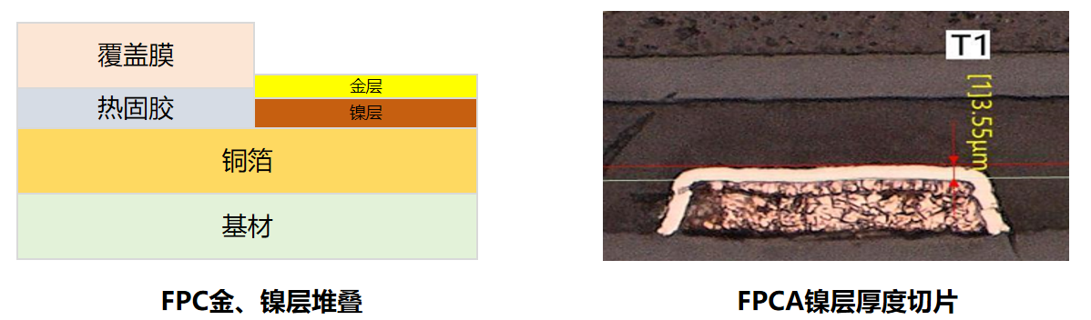 增强机械强度:纯铜、纯金材质较软,FPC反复插接、与连接器触点接触时易磨损,而镍层硬度高于铜、耐磨性更好,可有效保护下方铜层。