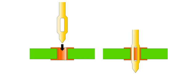 适配压接连接工艺,也称鱼眼端子连接技术,是传统焊接工艺的高效替代方案。依靠弹性插针与金属化孔的精密配合,以免焊接冷连接方式实现稳定导通;压接过程中端子弹性形变,形成低阻抗连接,具备结构牢固、抗震性强、装配高效的特点。