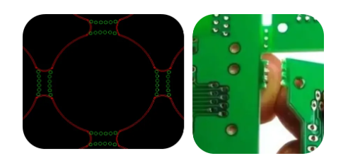 也叫齿形孔,为金属化半边孔结构。主要用于 PCB 模块化对接,可实现单块子板与主板精准对接,同轴度高、连接通道稳定,性能优于传统对接焊盘。