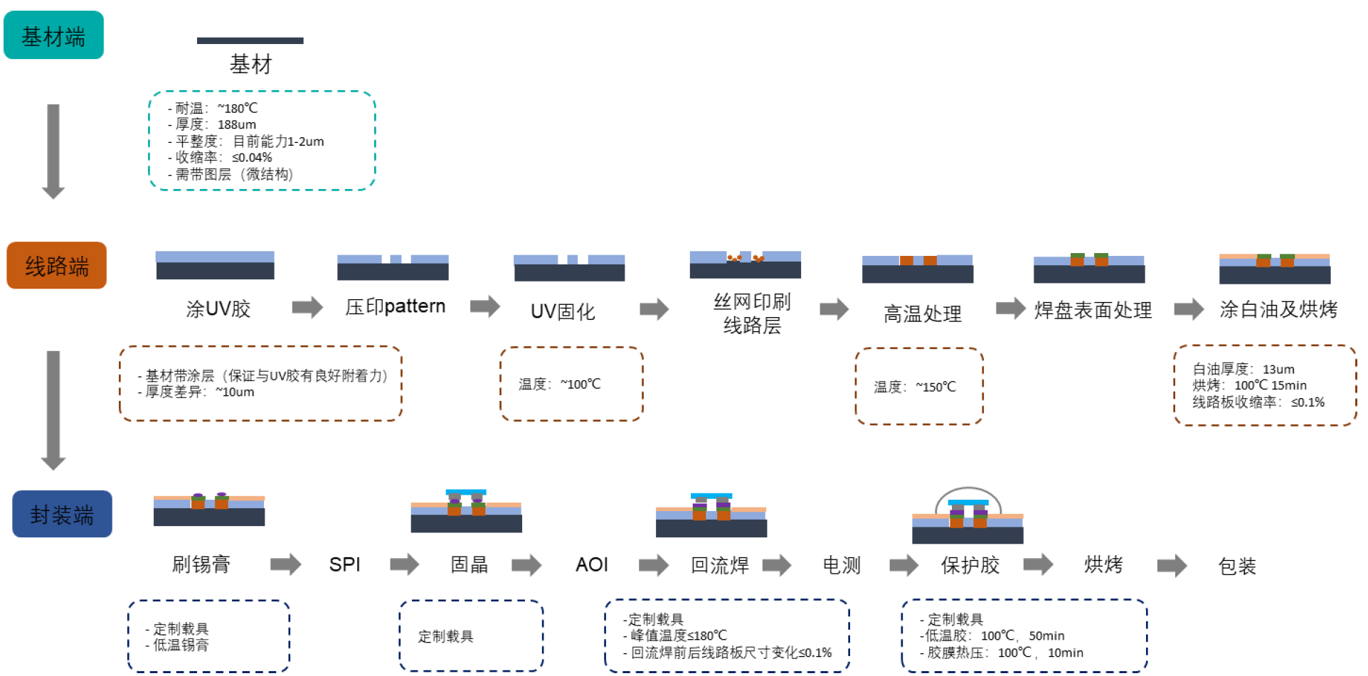 若选用PET基材(耐温180℃),注意选择低温锡膏,且回流焊曲线峰值不超过180℃,同时需要重点测试LED的推拉力、焊接可靠性及温升情况。
