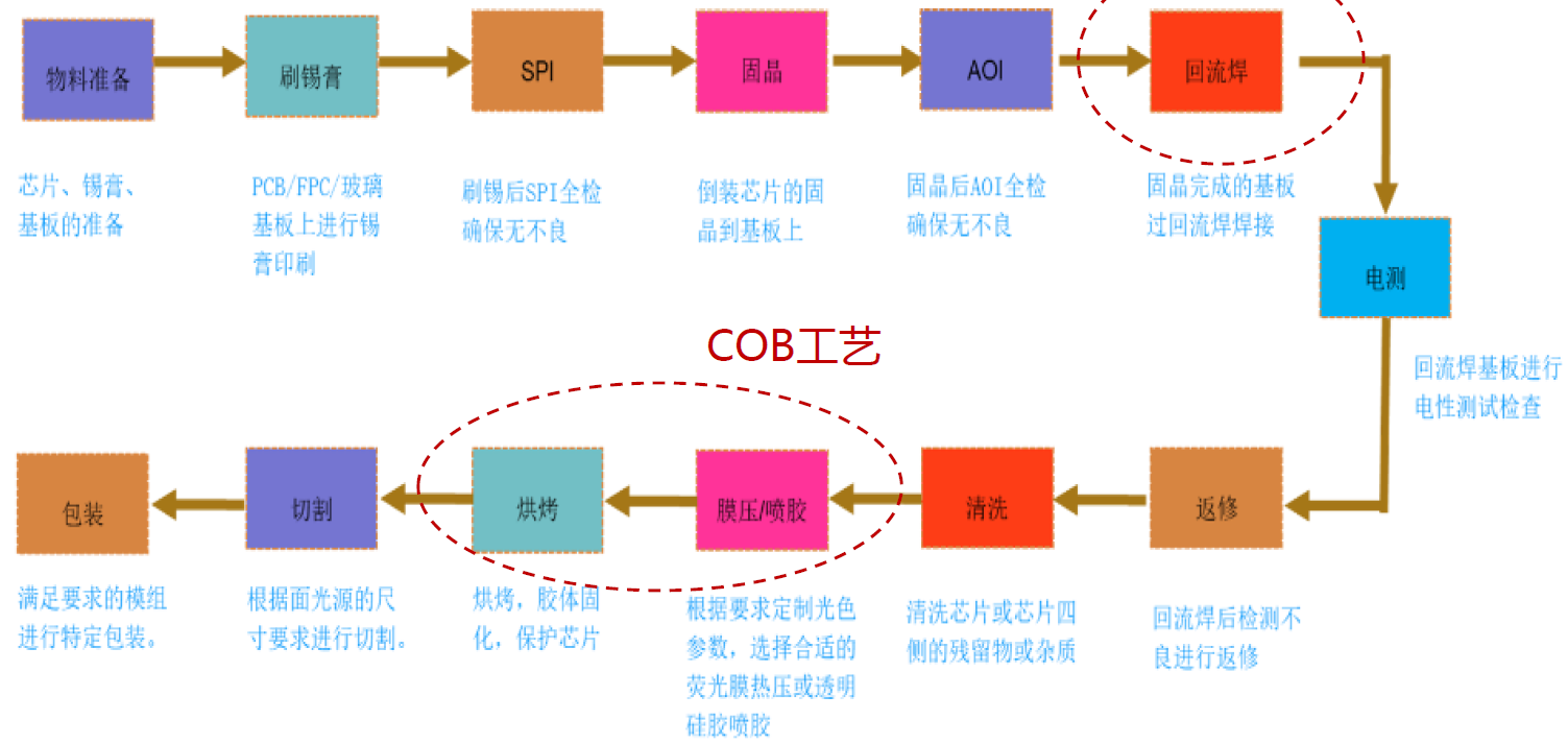 Mini LED柔性灯板的加工工艺流程如下图所示。