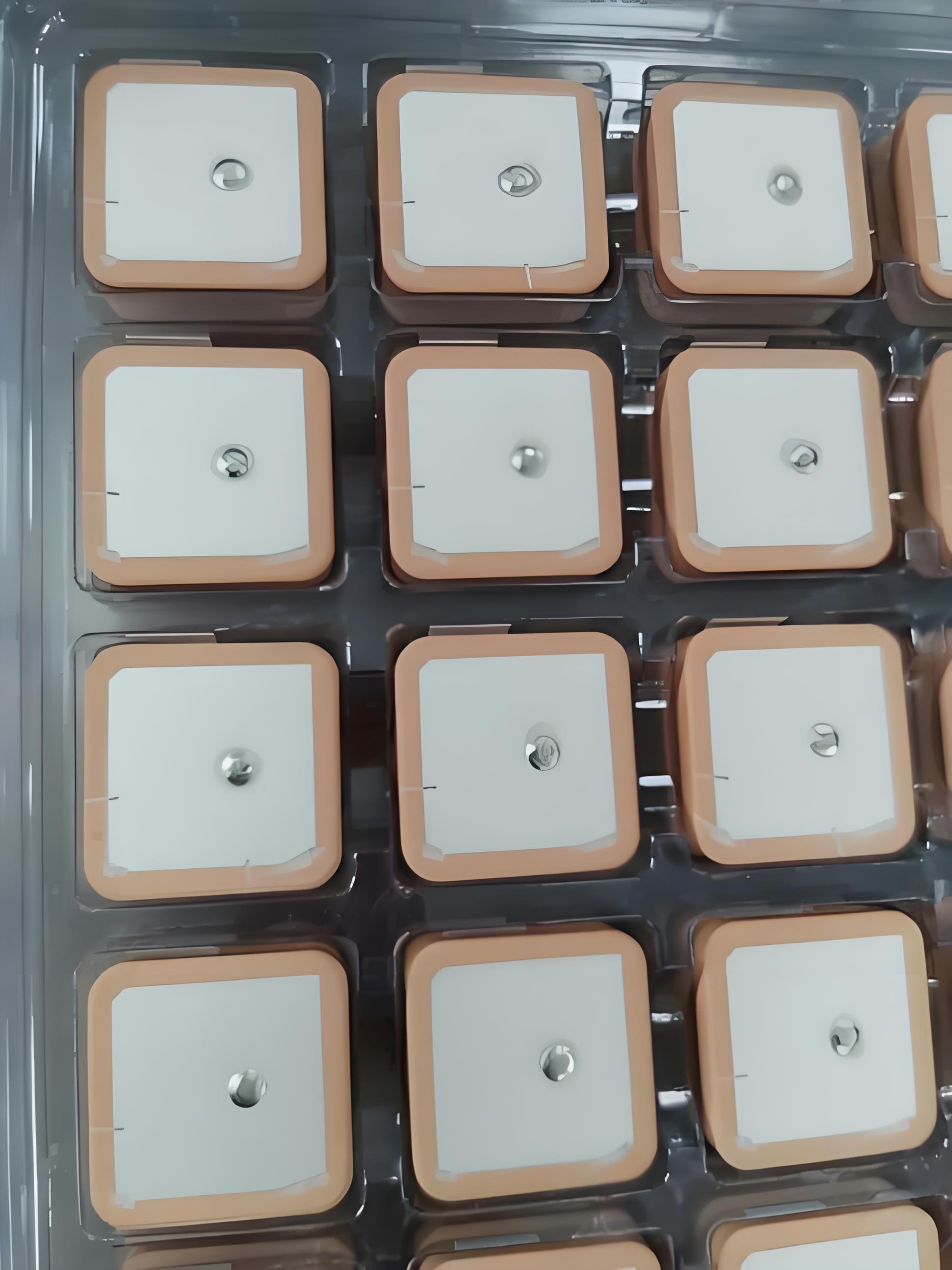 陶瓷基片:常见标准尺寸涵盖38×38mm、25×25mm、18×18mm、15×15mm、12×12mm等规格。在相同工艺条件下,瓷片面积越大,其介电常数越高,天线共振频率越稳定,信号接收灵敏度与覆盖范围也越优,可根据不同终端设备的安装空间与性能需求灵活选型。