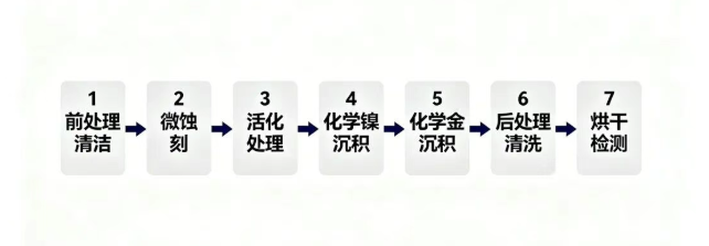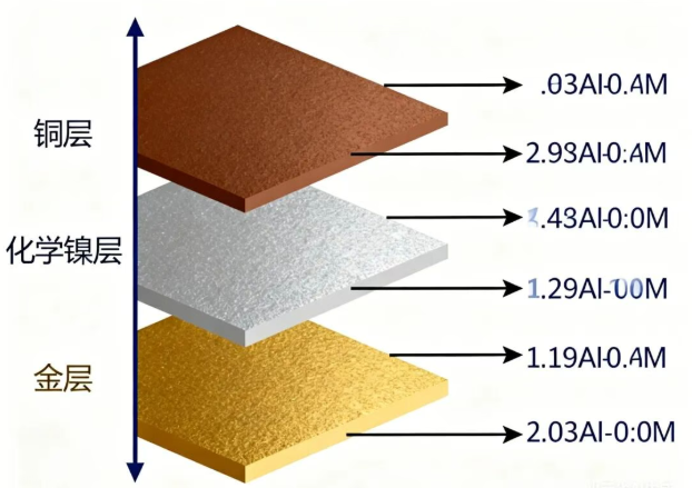 铜 → 化学镍层 3~5μm → 金层 0.05~0.1μm。