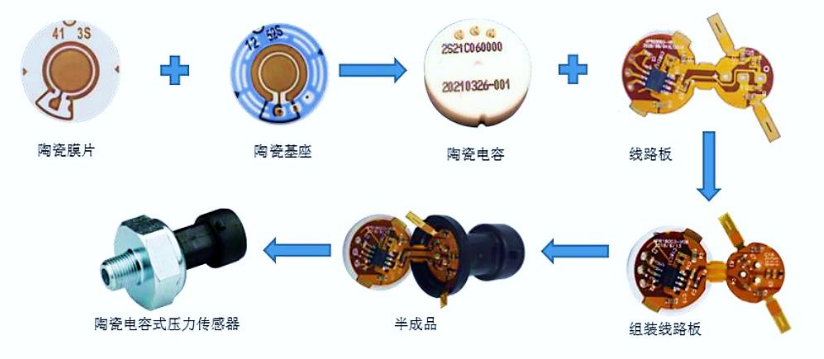 与传统硅基压力传感器相比,此类陶瓷电容式压力传感器不仅具备更高的灵敏度和更低的功耗,还拥有更宽的工作温度范围和更强的环境适应性;与厚膜陶瓷压力传感器相比,其集成度更高、结构更紧凑,更适配小型化、高精度的应用需求。目前,该类传感器已广泛应用于航空航天、石油天然气、化工、食品制药等领域,为极端环境下的压力监测提供了可靠的技术支撑。