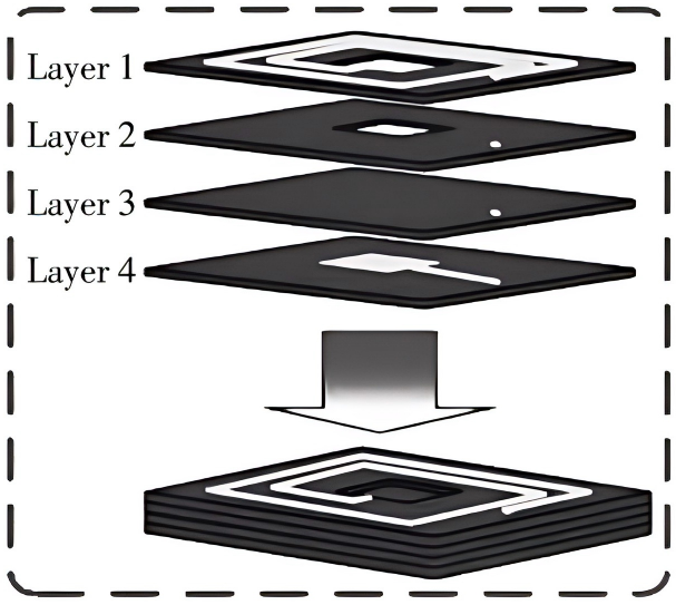 银浆填充完成后,通过高精度丝网印刷机开展印刷作业(见图:丝网印刷示意图),核心是在生瓷带上成型电感线圈、电容器等无源元件及相关电路。按照预设设计方案,将金属板(作为电容器的电极板)和周围的螺旋金属线(作为平面电感器)精准印刷在生瓷带表面,确保电路图形的精度和完整性。印刷完成后,将带有银浆的生瓷带放入120℃的空气干燥箱中,进行约5分钟的热处理,目的是去除银浆中的水分和有机溶剂,使银浆初步固化,为后续层压和共烧工序奠定基础。