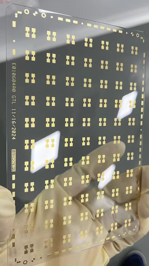 核心技术亮点:采用先进晶体生长工艺(泡生法/提拉法),确保晶体完整性与低缺陷密度;通过等离子清洗+离子轰击双重活化,搭配Ti/Cr过渡层沉积,解决蓝宝石表面惰性导致的金属附着力难题,剥离强度≥0.8N/mm(Class 3级标准);化学浸金工艺严格管控,金层厚度≥1u''、纯度≥99.95%,1oz铜层均匀无针孔,无阻焊设计适配高频与精密封装需求。